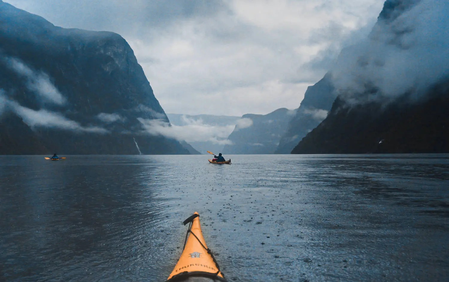 Kajakfahren ist zweifellos die beste Art, die Großartigkeit der Fjorde wirklich zu erleben. Geräuschlos und fließend gleitest du nah an Felswänden vorbei, paddelst unter Wasserfällen hindurch und spürst die Majestät dieses Ortes ohne Filter.